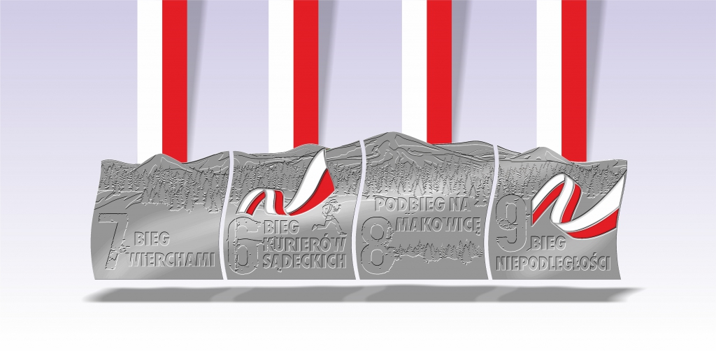 Dodatkowo, medal ten będzie łączył się z innymi medalami z biegów które organizujemy czyli Podbieg na Makowicę, Bieg Kurierów Sądeckich oraz Bieg Niepodległości.